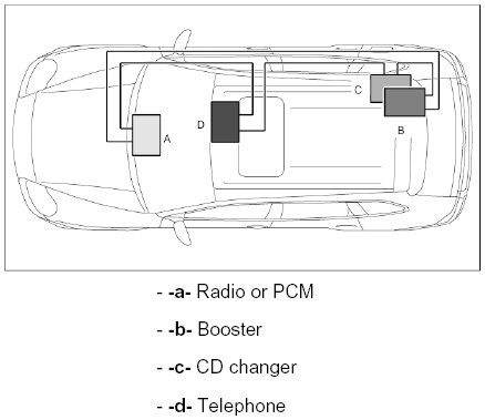 In all MOST control units, at least one sending diode and one receiver diode are installed. The sending diode of a MOST device is connected to a receiver diode of a 2nd MOST device. This results in a ring where the light signal is reinforced in each control unit (in each control unit, the light signal is transformed into an electrical signal).