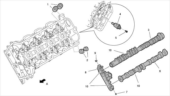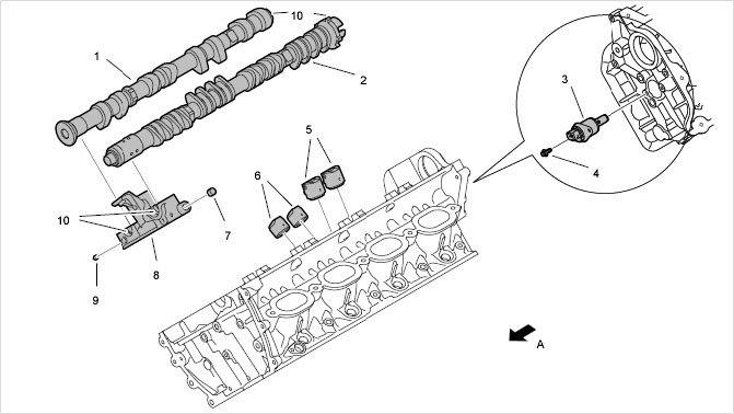 1 - Camshaft (outlet)