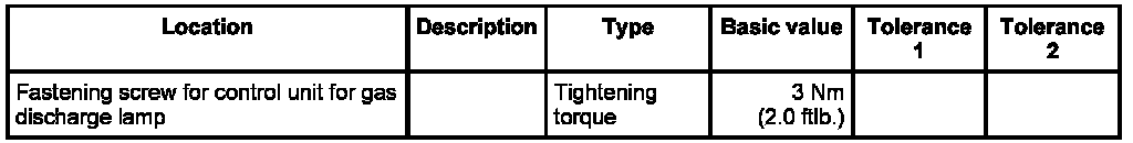 1. Position control unit for gas-discharge headlight -2- on the Bi-Xenon headlight -3- in -direction of arrow- and secure it with the three fastening screws -2-. - Tightening torque: 3 Nm (2.0 ftlb.)