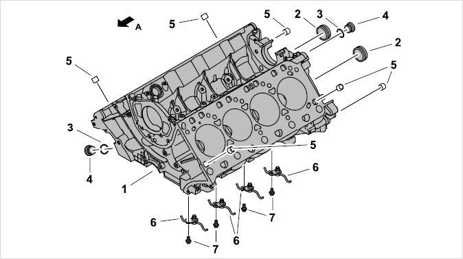 4 - Screw plug on upper part of crankcase - Tightening torque: 75 Nm (56 ftlb.)