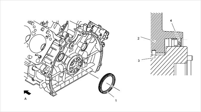 7 - Shaft sealing ring - Do not touch sealing ring lip! Clean crankshaft flange and oil lightly