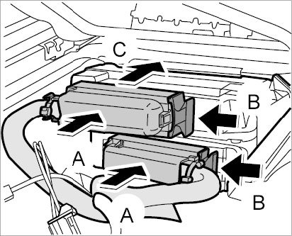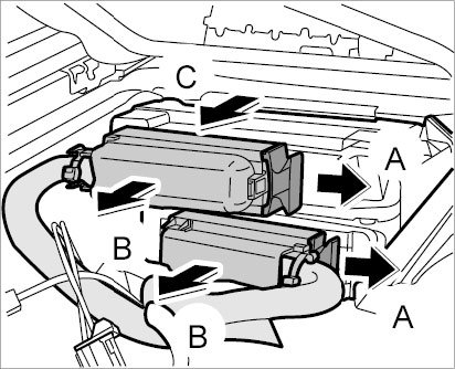 9. Release the locking lugs on both sides -A- and pull out the control unit -B-.