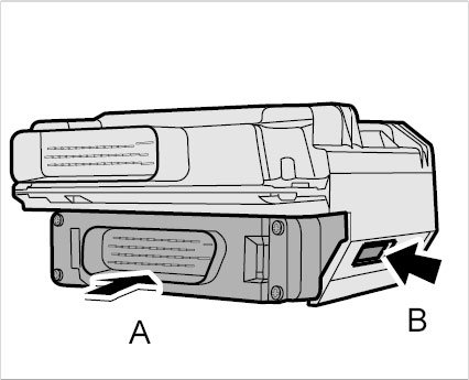 2. Connect the two connectors -A- and slide in the locking mechanism -B- until it engages securely.