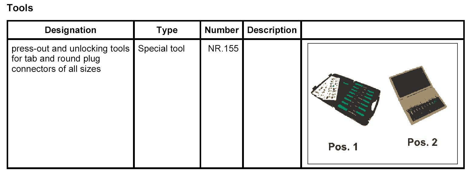 2. Position the press-out and unlocking tools for tab and round plug connectors of all sizes NR.155 on the primary locking mechanism and lift the locking mechanism.