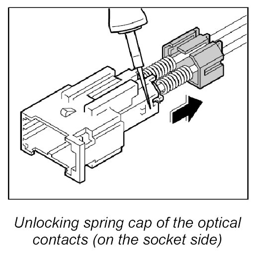 When exchanging the LWL, the optical contacts from the plug connection must be removed.