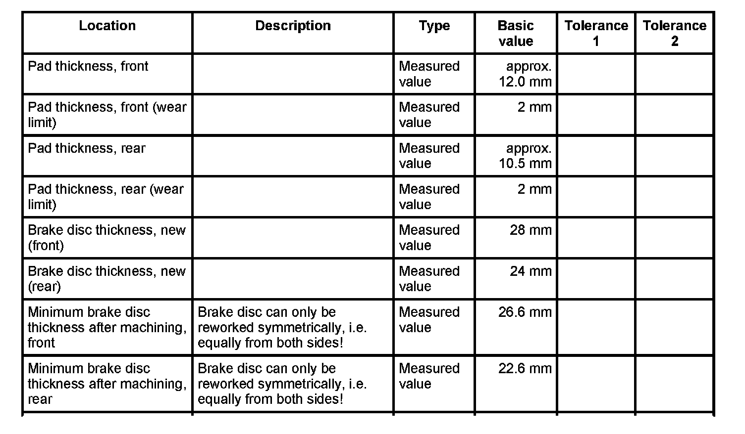 Test values/wear limits for Boxster S/Cayman S - PCCB brakes