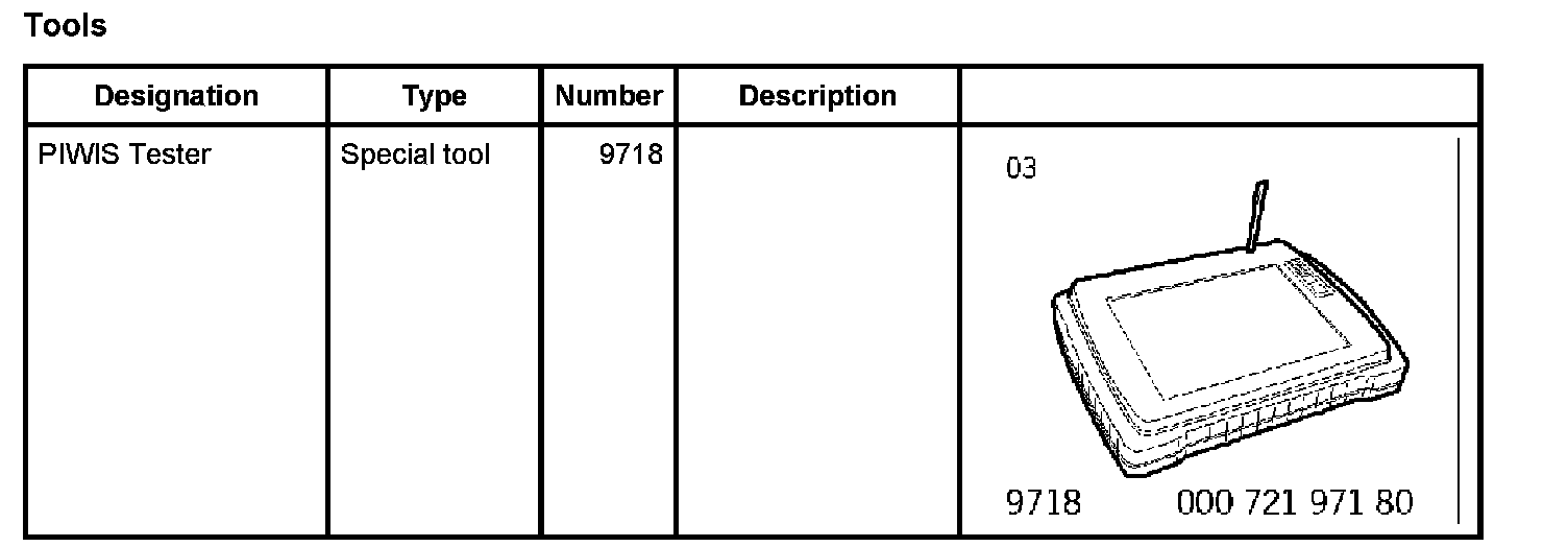 -> After working on wheel suspension parts, when replacing the steering-angle sensor, and after changing the wheel alignment values, calibrate the steering-angle sensor using the PIWIS Tester 9718.