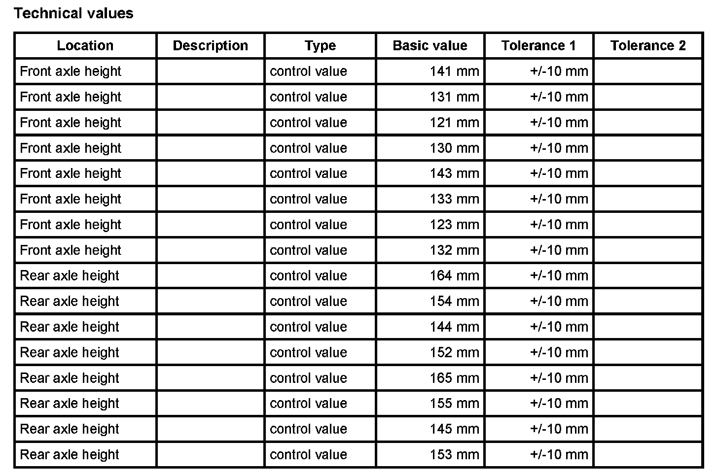 ^ The following values relate to the empty weight, i.e. full fuel tank, vehicle with tools, but without driver and without additional weights!