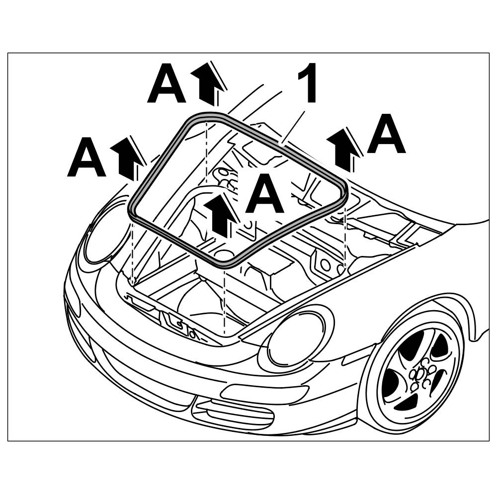 1. Pre-position the seal -1- and press onto the sheetmetal flanges in this area -A-.