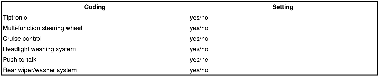 14. Change to the Coding menu and compare the coding with the vehicle equipment. Recode if necessary.