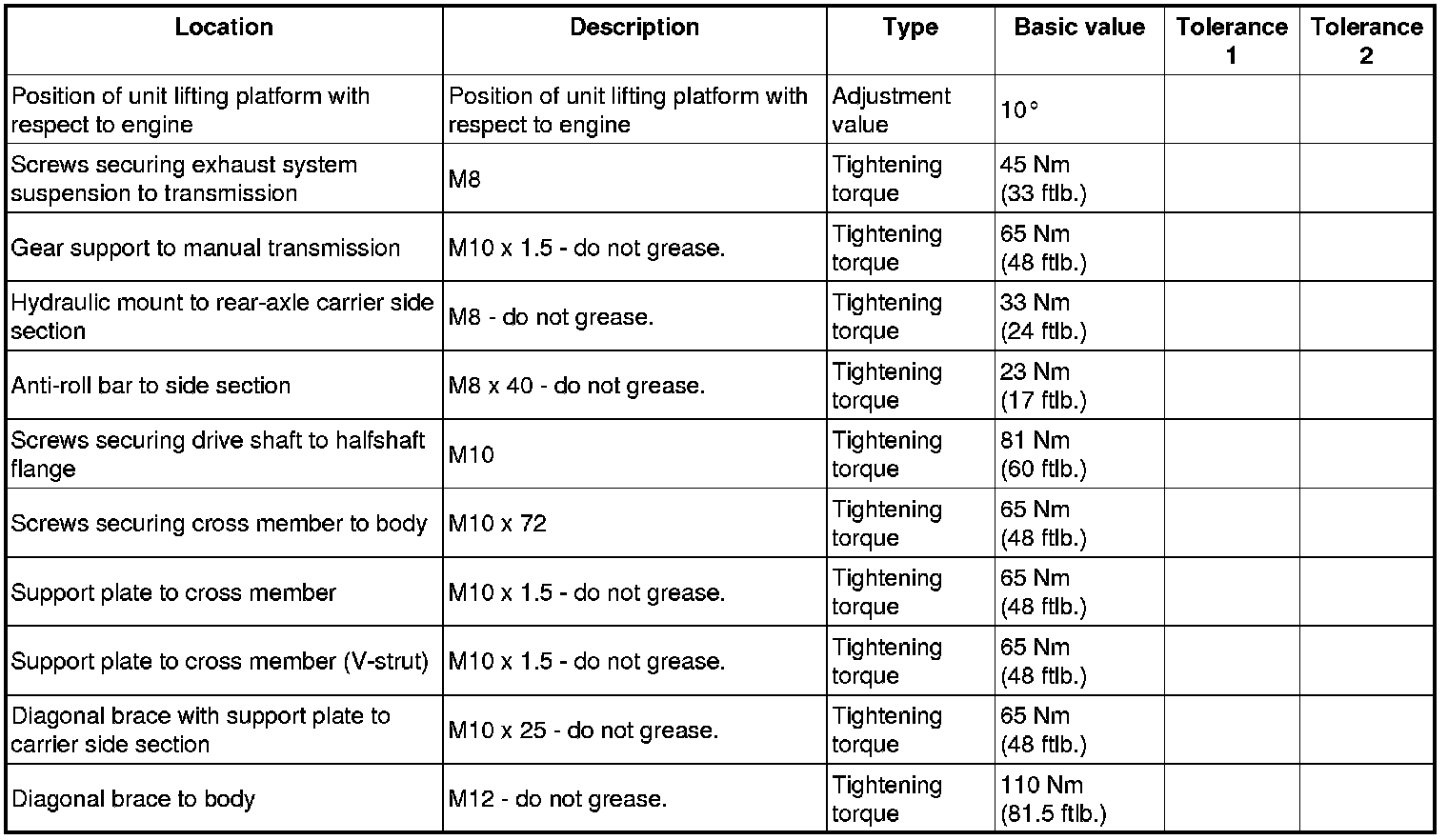 => Tightening torque: 81 Nm (60 ftlb.)