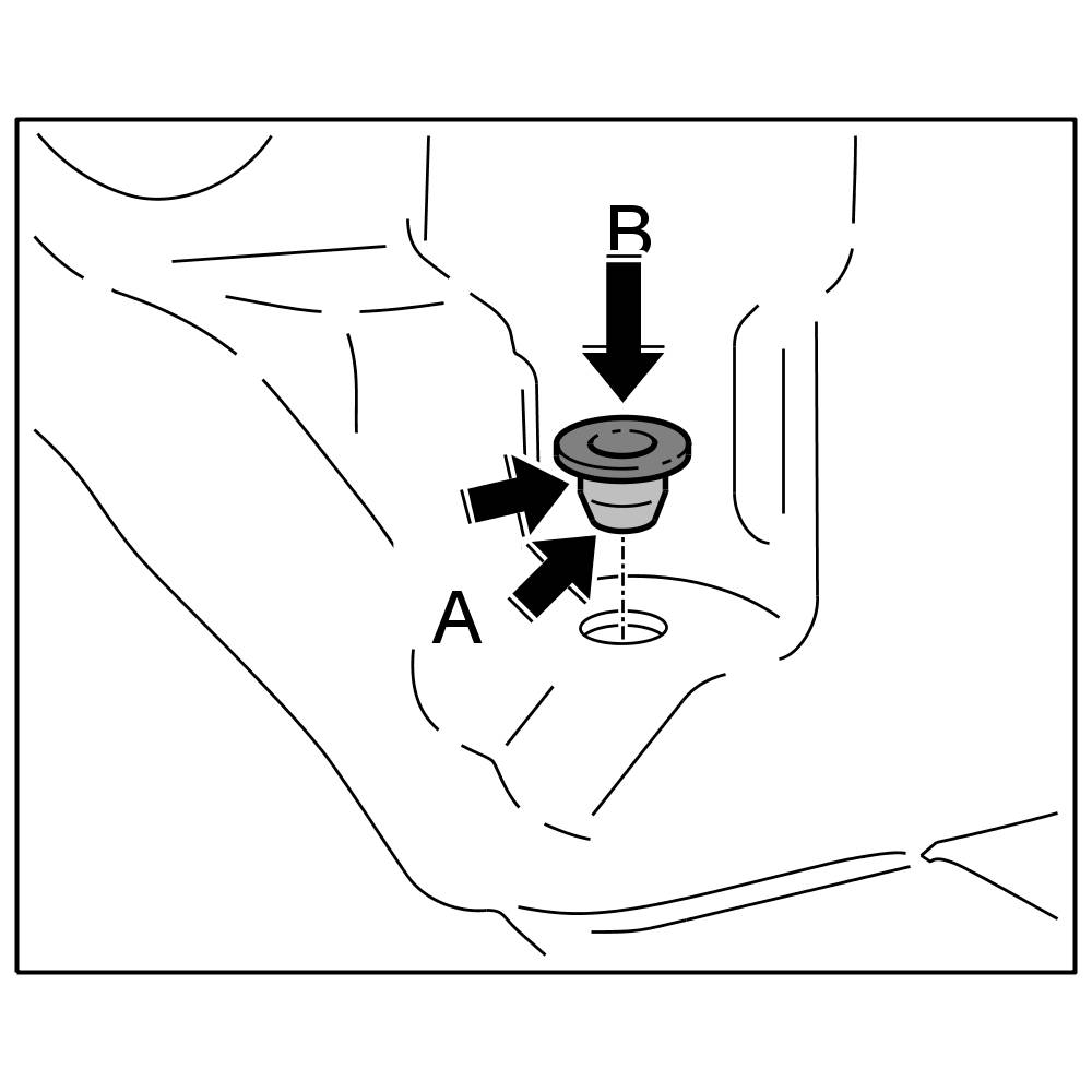 1. Apply a suitable rubber lubricant (tyre mounting paste) to the sealing surface -arrows A- and press the rubber seal into the tank -arrow B- until it is felt to engage.