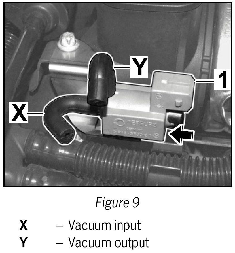 on the vacuum intake connection (-> Figure 16 -arrow-) for the electric change-over valve.