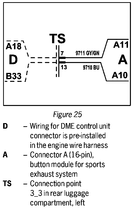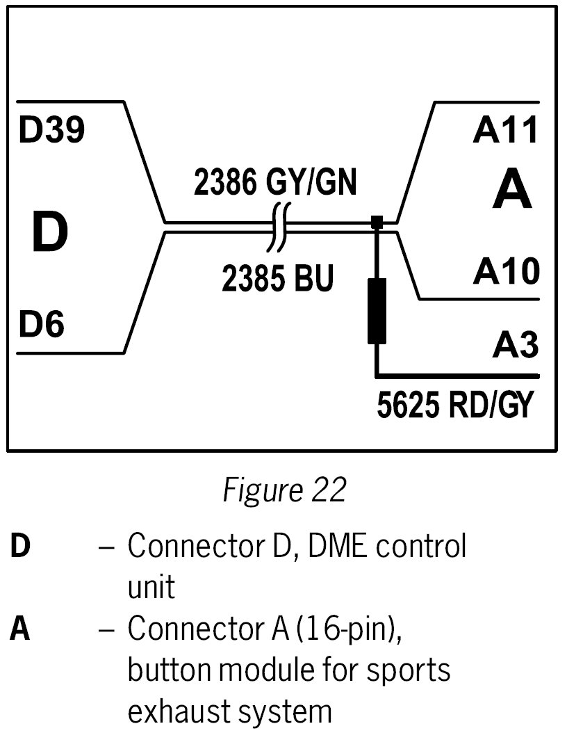 5. 2. 3 Connect electric wire harness for the sports exhaust system button to the DME control unit