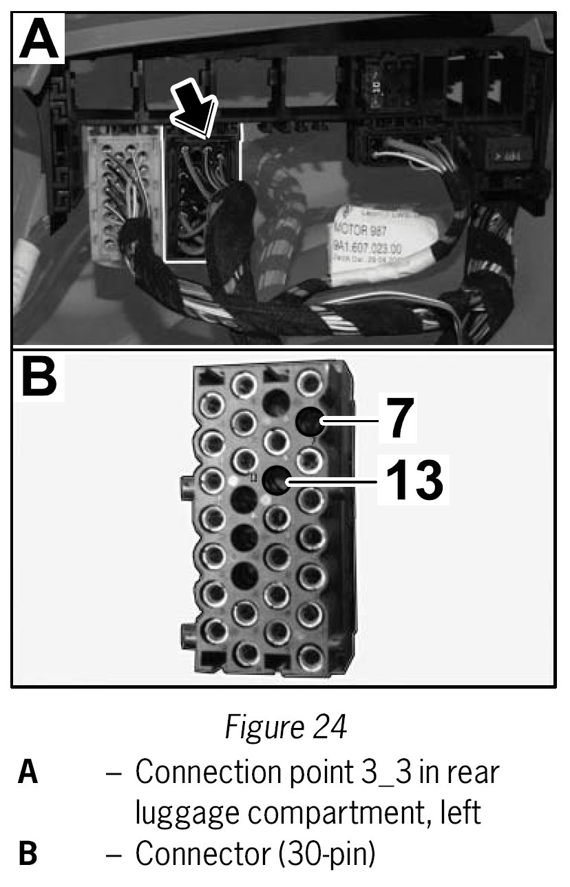 5. 3. 1 Expose connection point 3_3 in rear luggage compartment at the left (-> Figure 24 -A-).