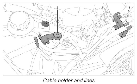 - The tank vent lines and low-pressure and vacuum lines can be unclipped close to the torque support and cylinder 4 (see illustration) -4-.