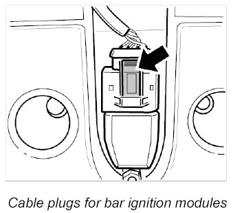 2. Release and pull off cable plugs -> Cable plugs for bar ignition modules. Remove screws from bar ignition modules and replace them (aluminium screws). -> Fastening screw on bar ignition module