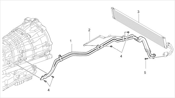 1. Unscrew fastening screws securing line for ATF cooling to transmission -4-.