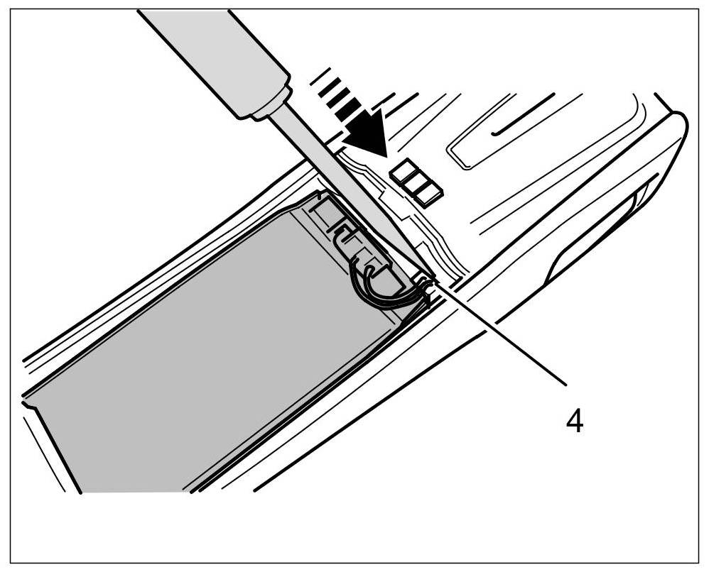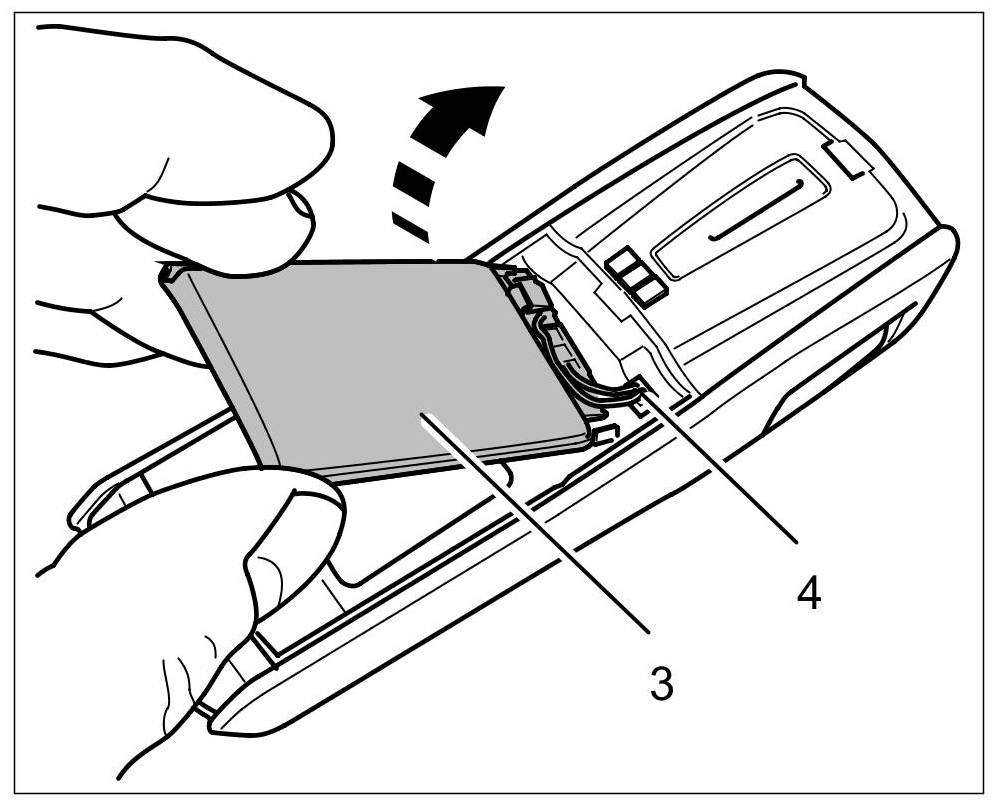 2. Lift up battery -3- and pull off electric connector -4- on the additional handset.