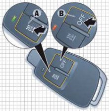 Button "A" must be pressed to switch on the auxiliary heater with the remote control. The LED lights up green.