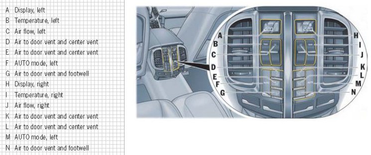The rear climate zones can be controlled using the following buttons on the front operating and air-conditioning unit: