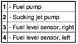 1. Remove fuel level sensor at the left -> 201519 Removing and installing fuel level sensor - section on "Removing" Removal and Replacement