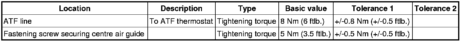 3. Tighten fastening screw used to secure ATF line to the thermostat => Tightening torque: 8 Nm (6 ftlb.)+/-0.8 Nm (+/-0.5 ftlb.).