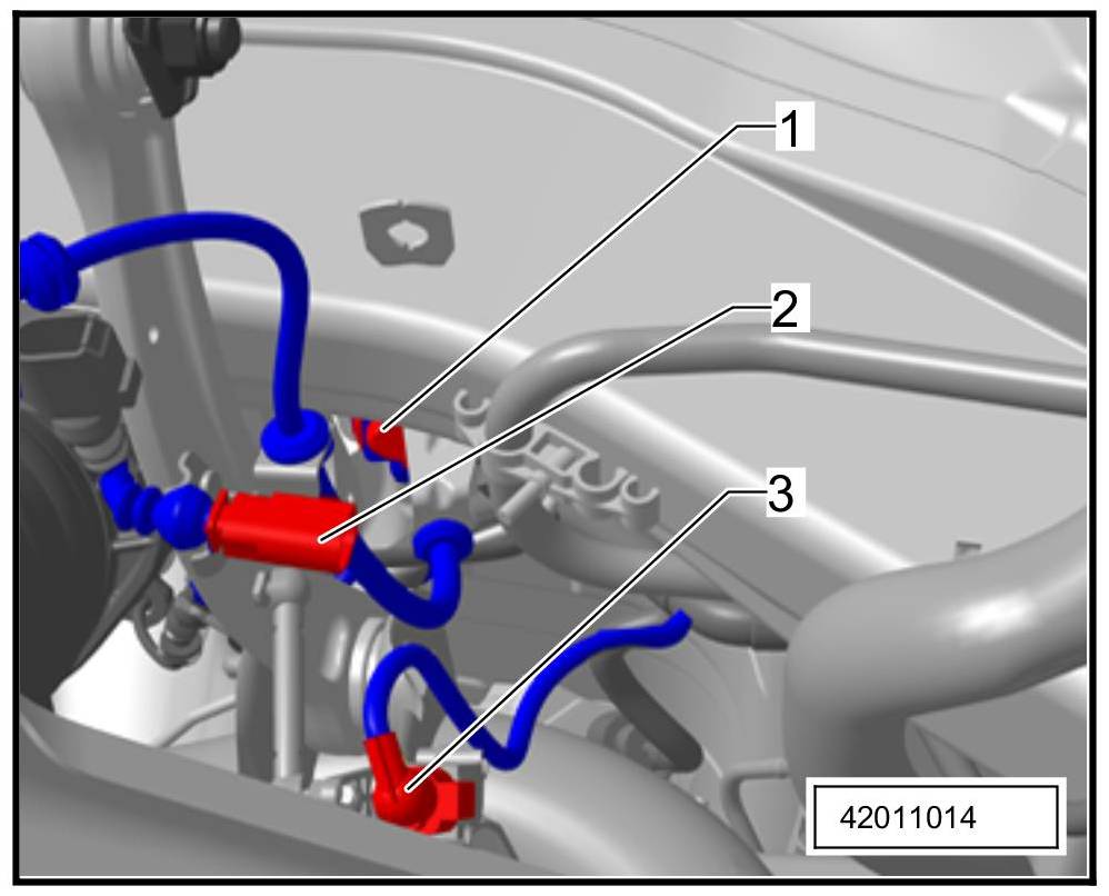 6. Disengage and disconnect wire harness for wheel carrier at the body in the wheel housing -1-.