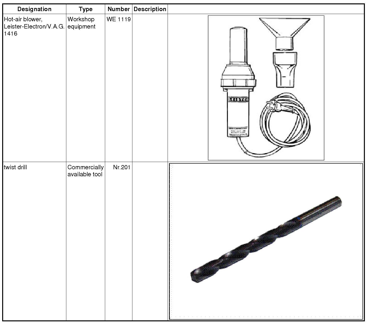 4. Heat bonding areas. Hot-air blower, Leister-Electron/V.A.G. 1416 WE 1119