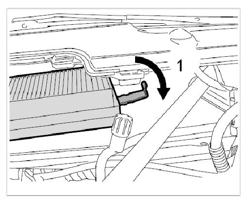 3. Close the lock -1- on the filter housing.