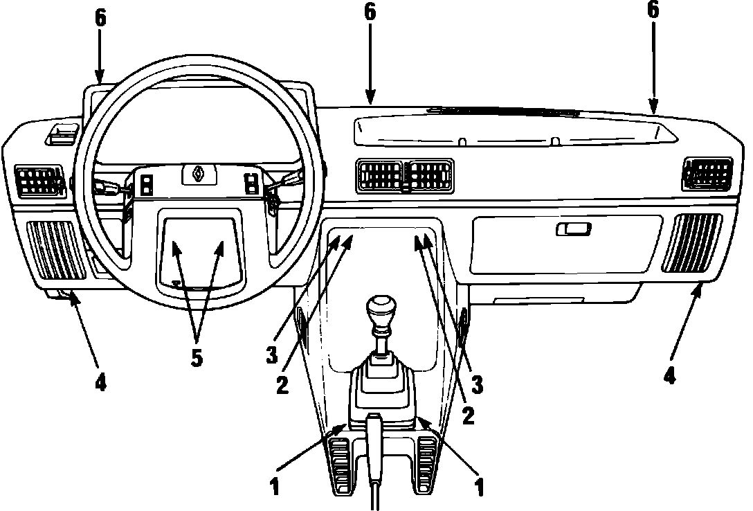 g. Lift instrument panel up to clear defroster duct and release clips (6), Fig. 12, disconnect necessary electrical connectors and remove instrument panel.