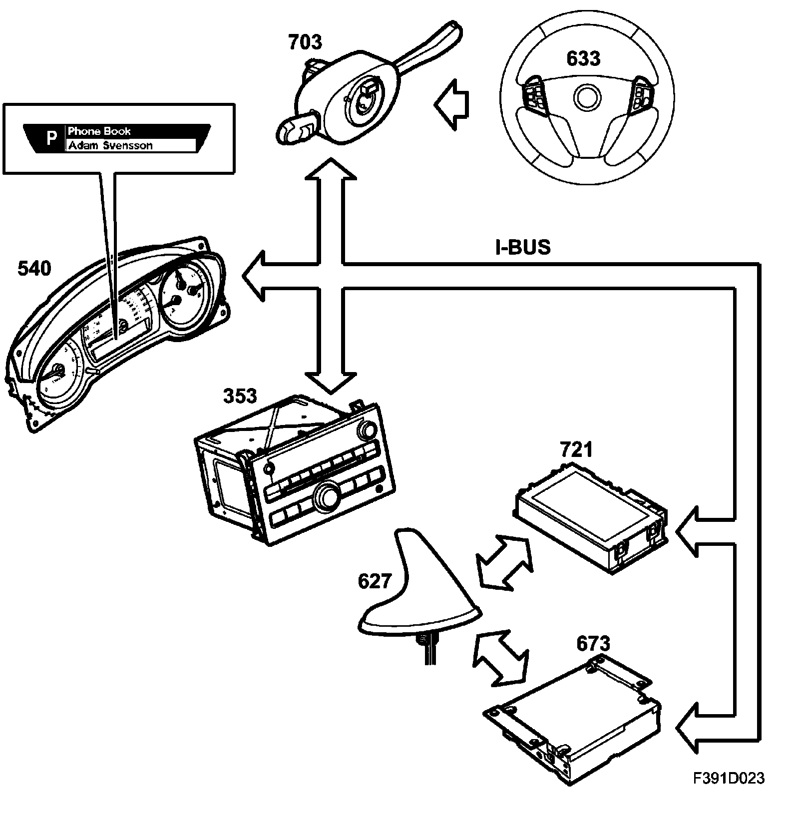 In both cases, the mobile phone is controlled with the steering wheel controls and voice recognition. SID displays selected telephone functions and indication that one is within an area with GSM coverage.