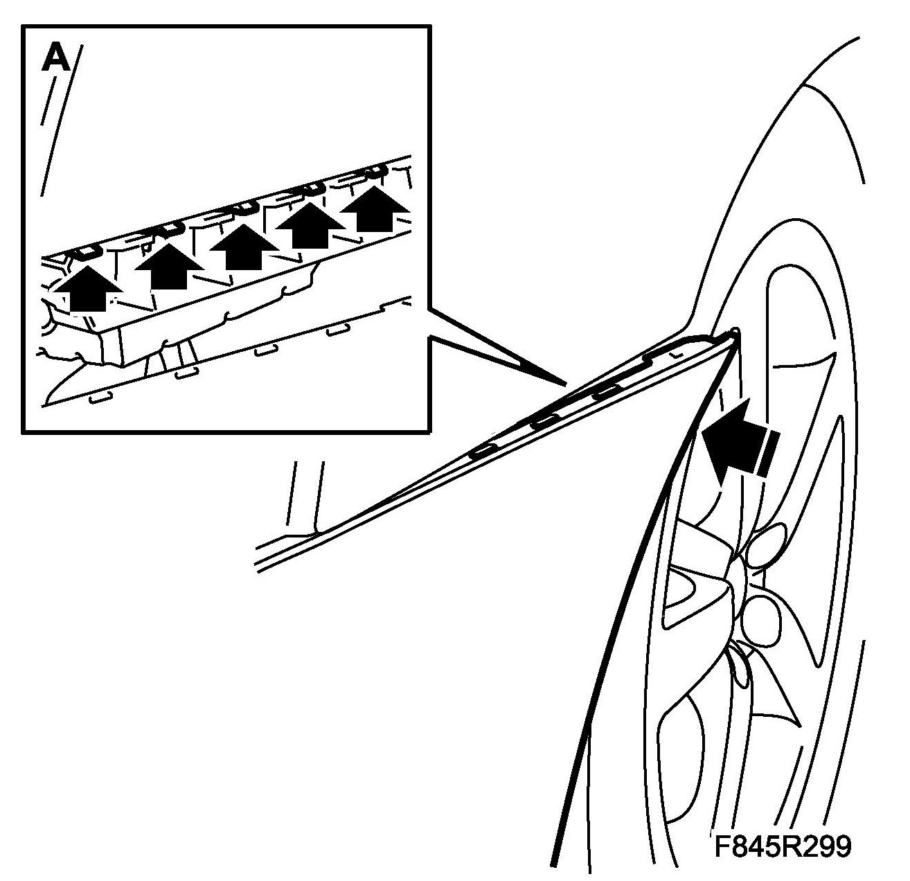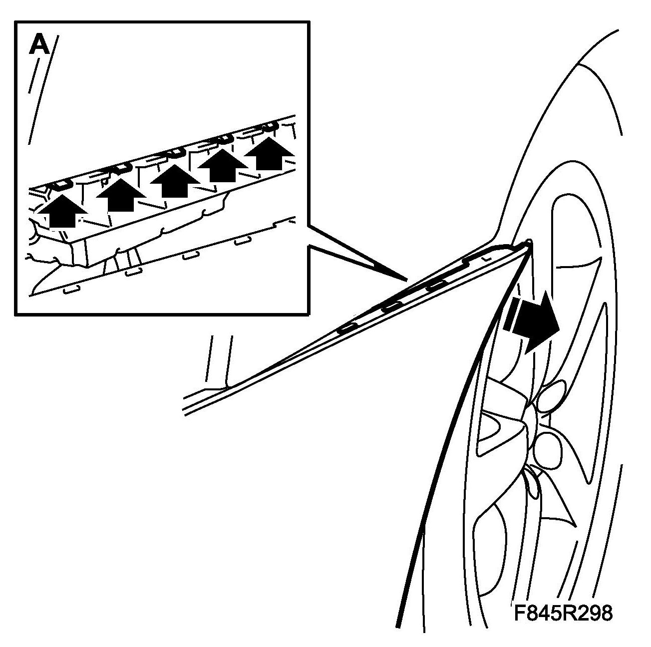 5. Pull the corner of the bumper shell (A) loose from the holder's mountings.