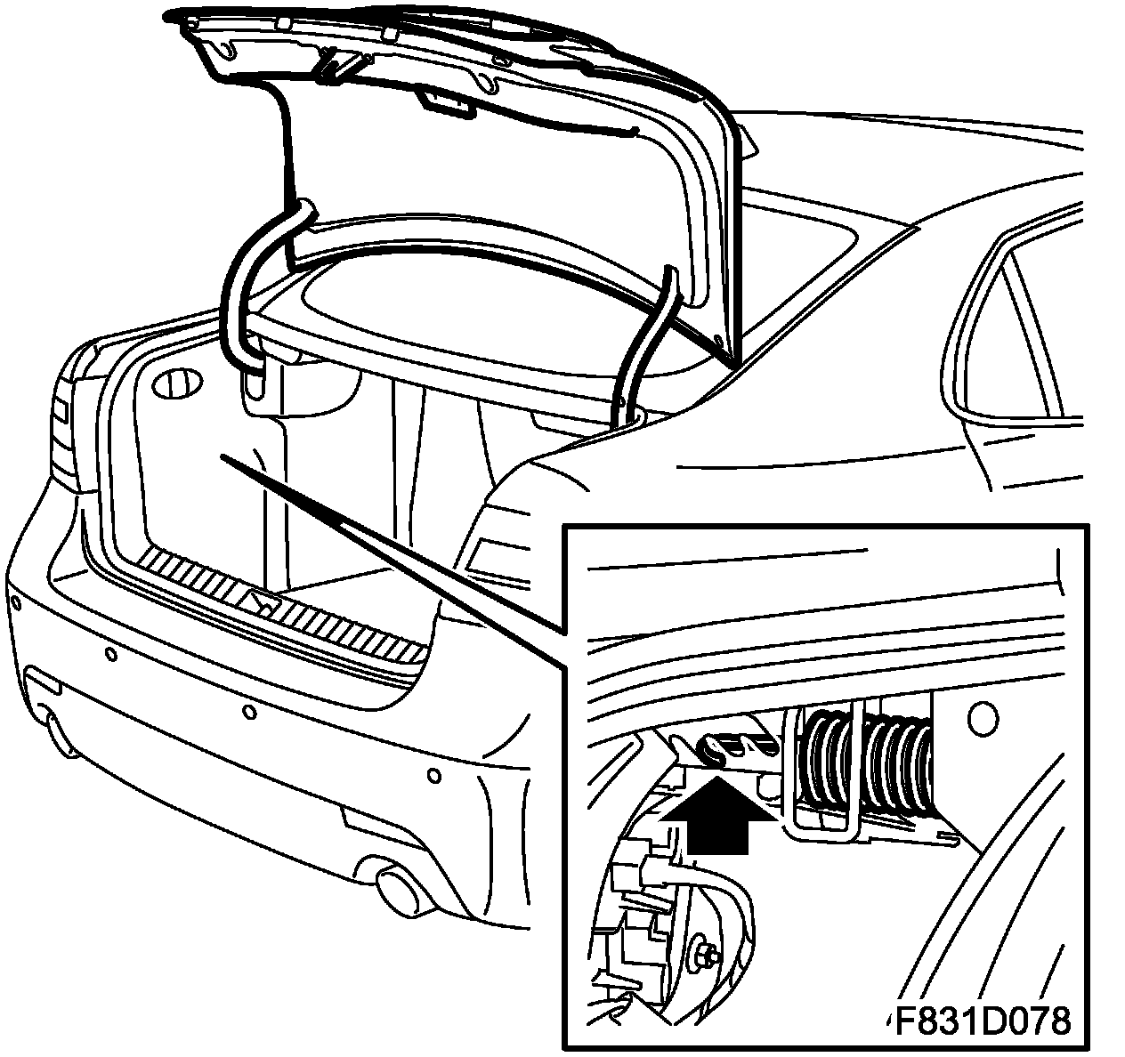 The tailgate has two gas cartridge lifting springs. The gas cartridges are located on both sides of the tailgate aperture between the roof and the headlining. The gas cartridges are mounted on ball studs in the hinge and roof. If the gas cartridge comes loose, e.g. in a collision, the front mountings are protected to prevent the gas cartridge from falling down or being thrown forward into the car.
