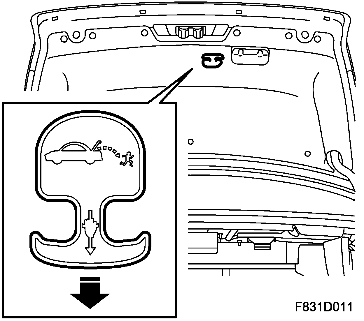 US/CA: In case somebody gets trapped in the luggage compartment, there is a luminescent handle inside the boot lid. This handle can be pulled down towards the floor to release the lock cylinder so that the boot lid can be opened from inside.