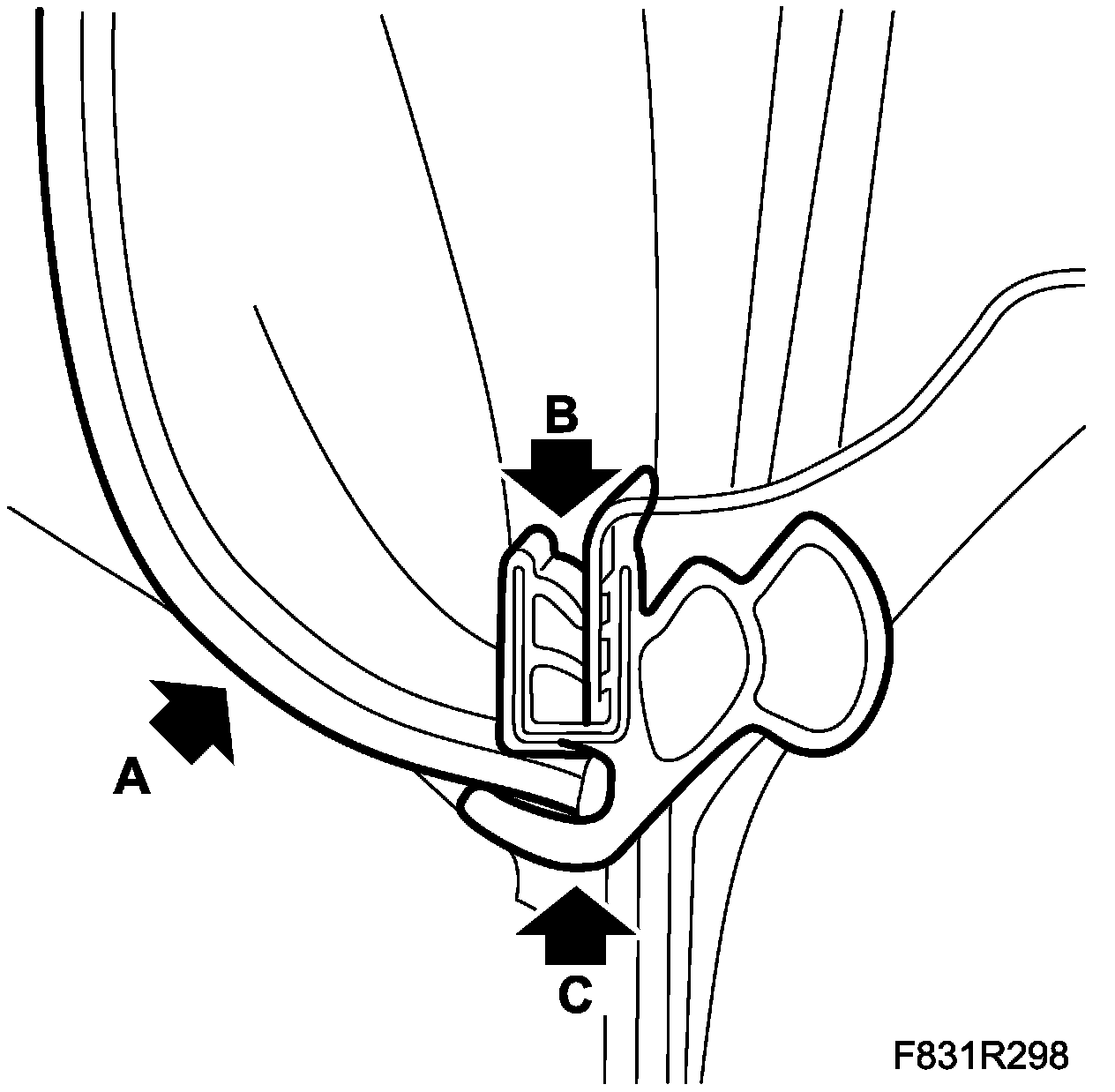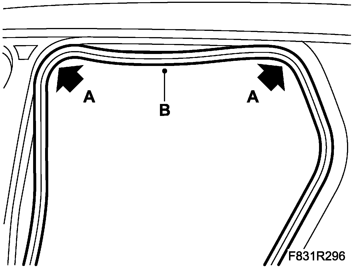3. Make sure that the headlining is correctly fitted in the seal as illustrated.