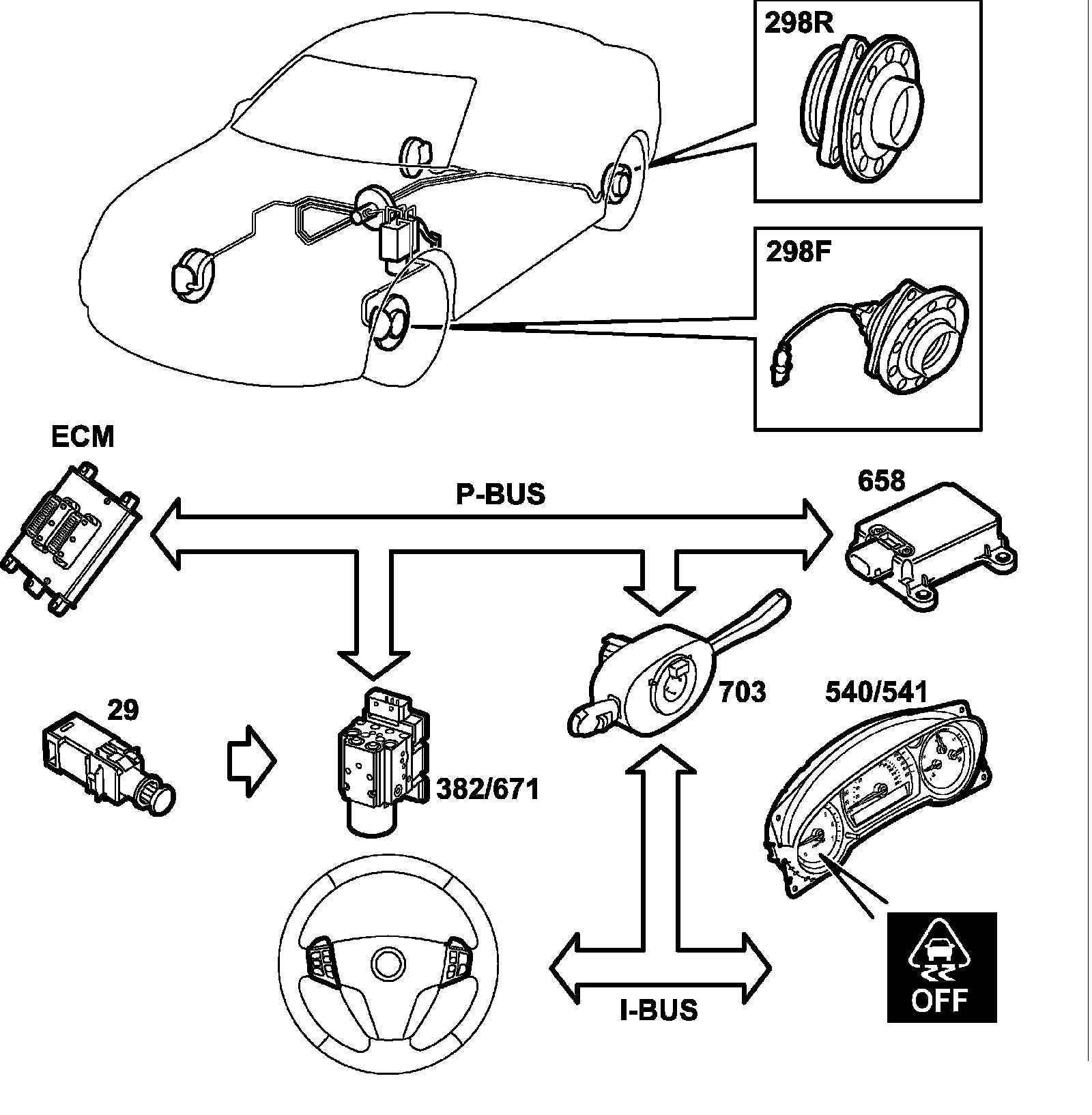 Note: The course of the car is compared with the direction chosen by the driver with the steering wheel and if these values do not correspond, the ESP function will engage. The driver must be active in turning the steering wheel and accordingly the wheels in the correct direction of travel if the system is to be able to regulate correctly. ESP does not mean that the driver can go faster but should be regarded as a safety net in unforeseen situations.