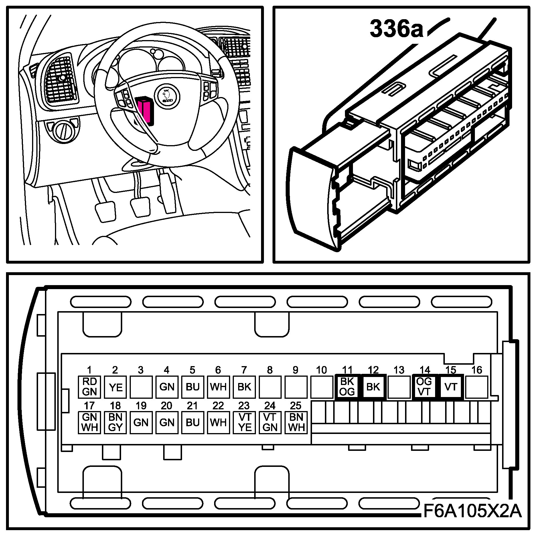 Connection from the steering wheel wiring harness