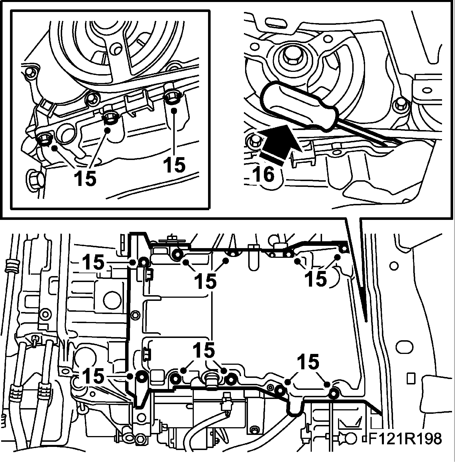 Tightening torque, oil sump 22 Nm (16 ft. lbs.).