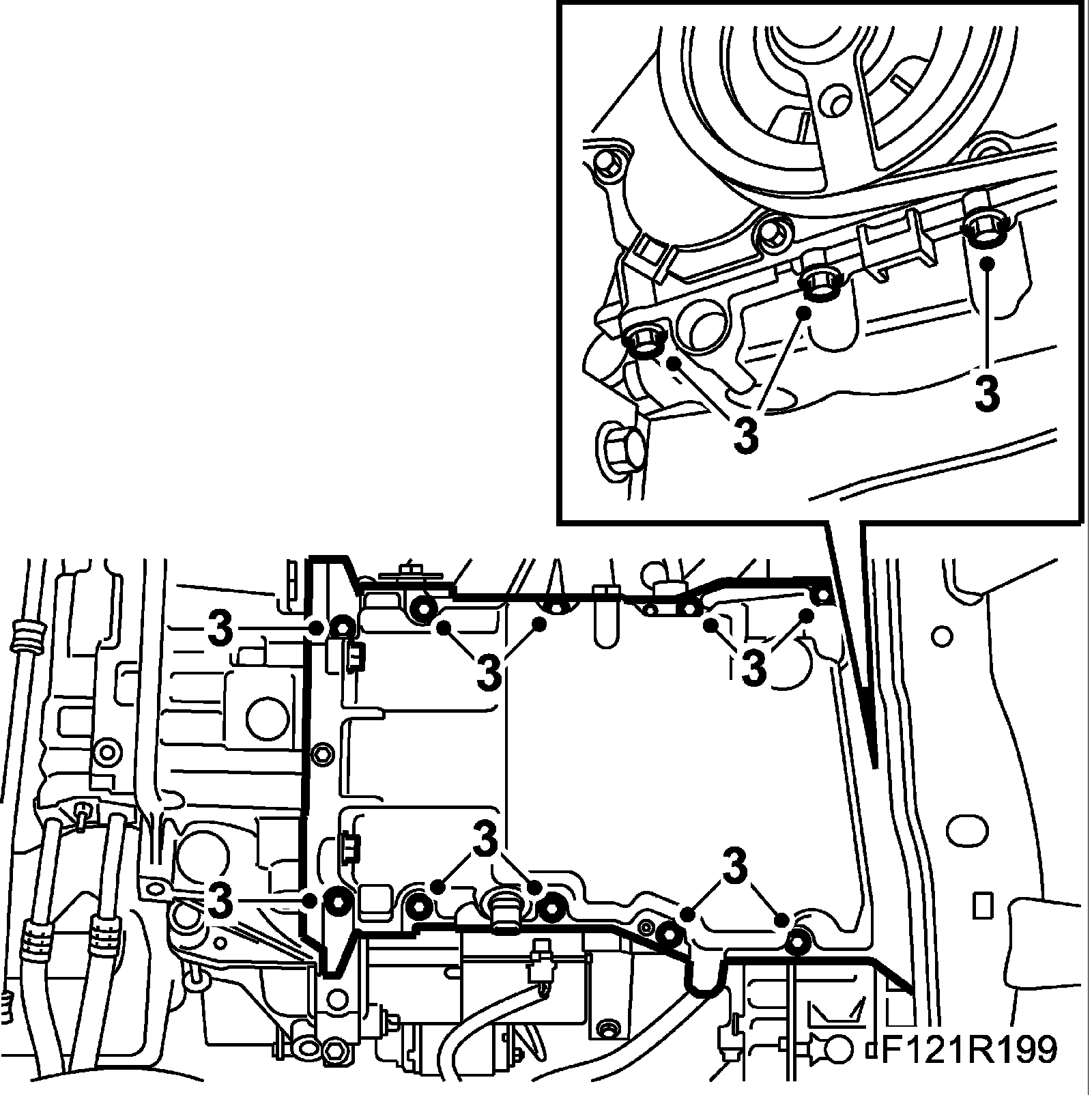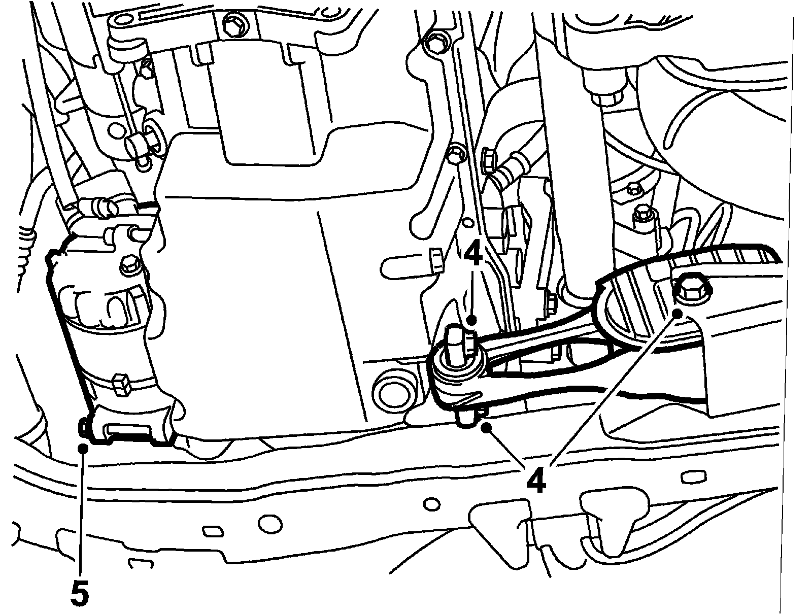 4. Up to M04 inclusive: Fit the front torque arm bolts to the oil sump and tighten the rear bolt.
