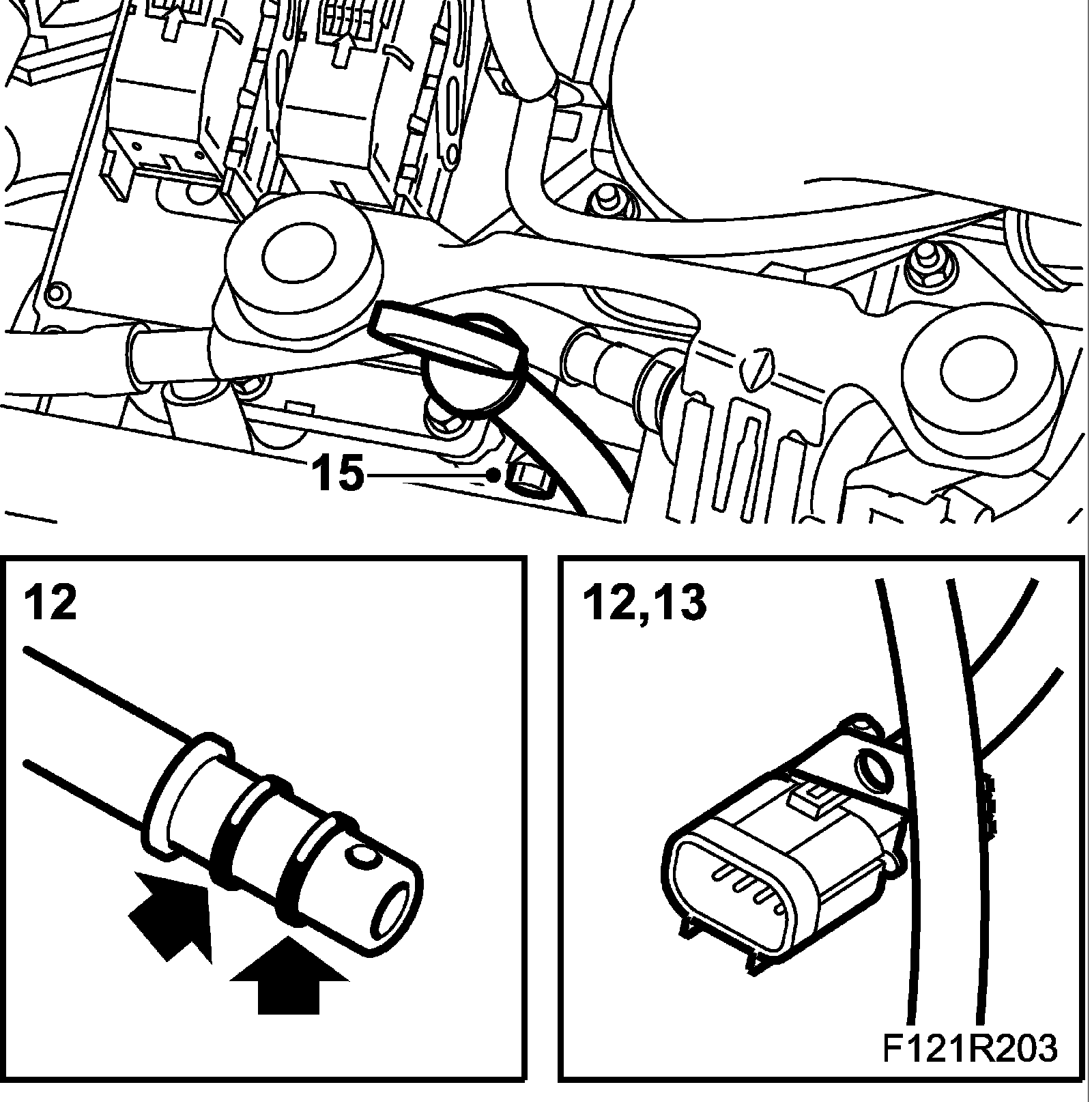 11. Raise the car and undo the connector to the oil level sensor. (Only on engine variant 13207R)