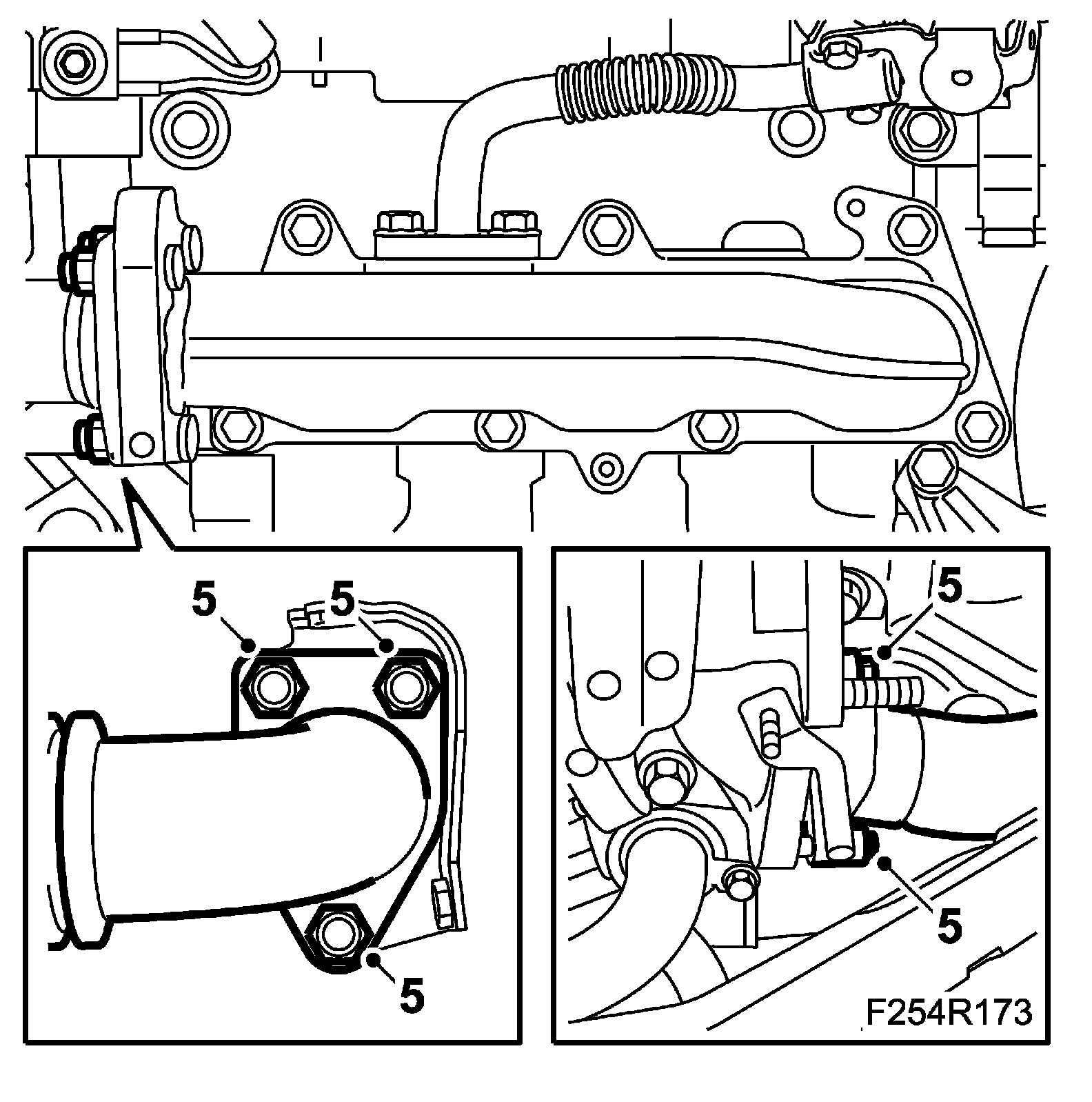 5. Detach the intermediate exhaust pipe from the turbocharger and the exhaust manifold.