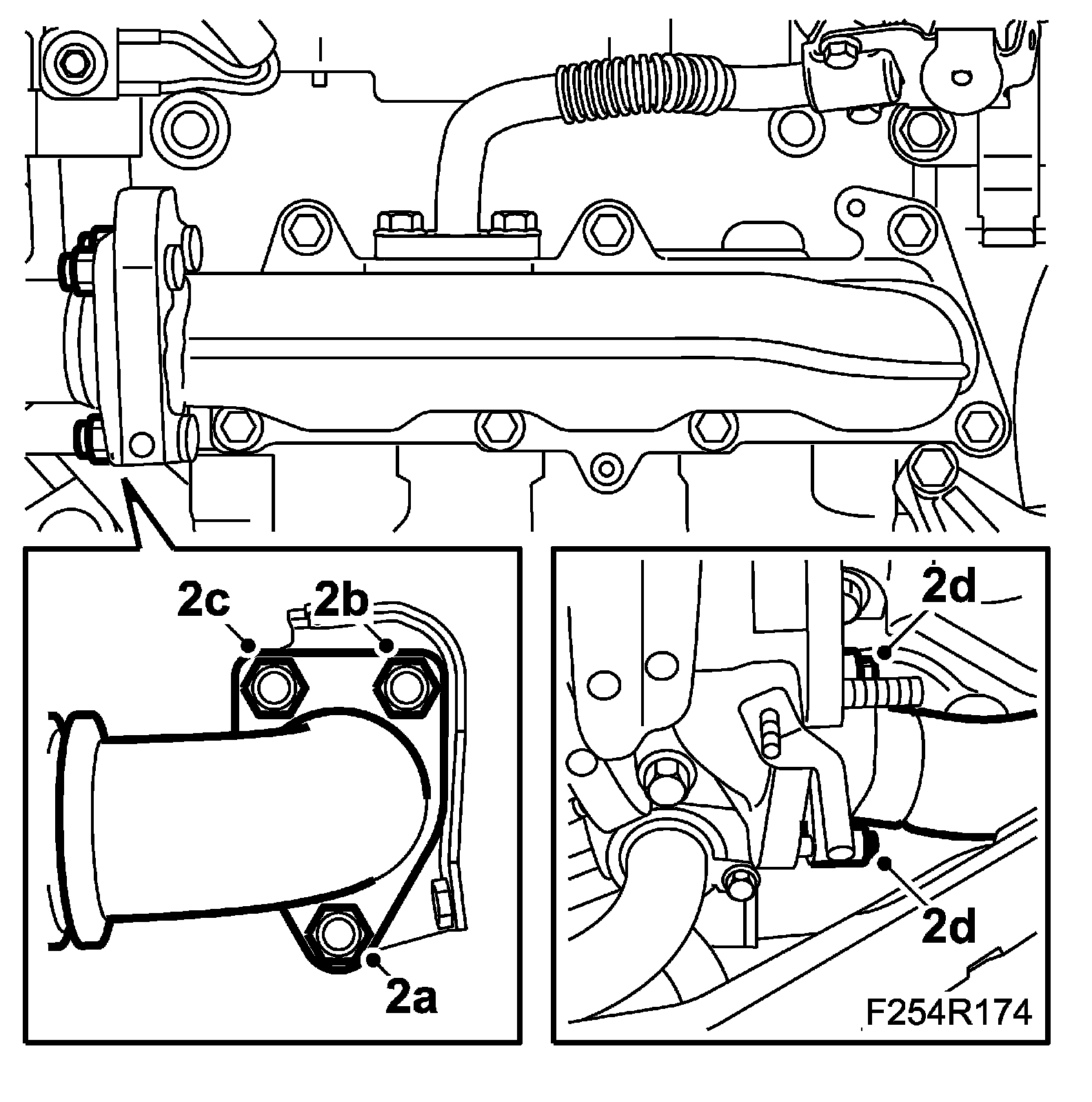 Tightening order 2a, 2b, 2c and 2d alternatingly on the turbocharger.