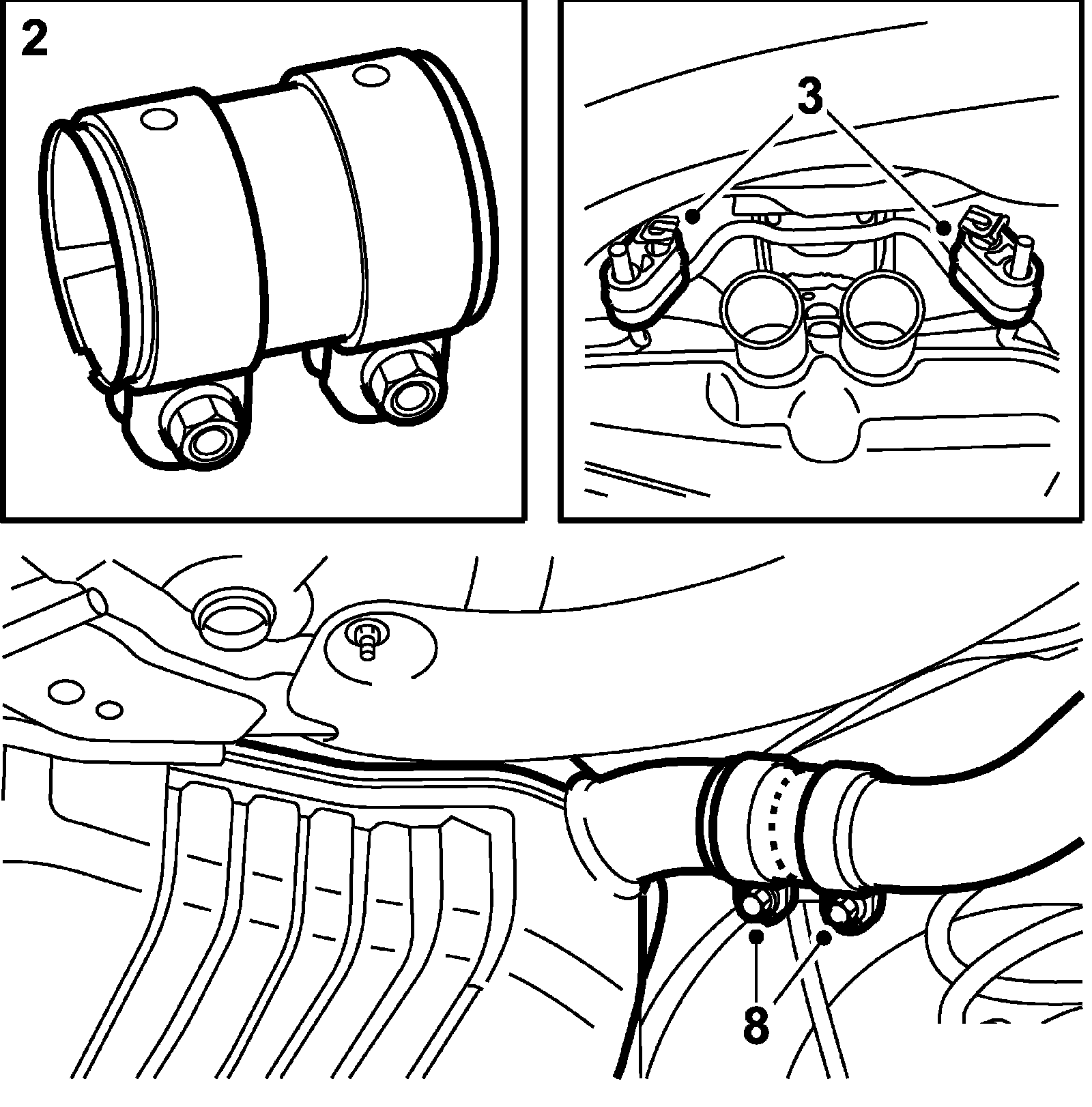 4. Change the rubber mountings for the front silencer as well if necessary.