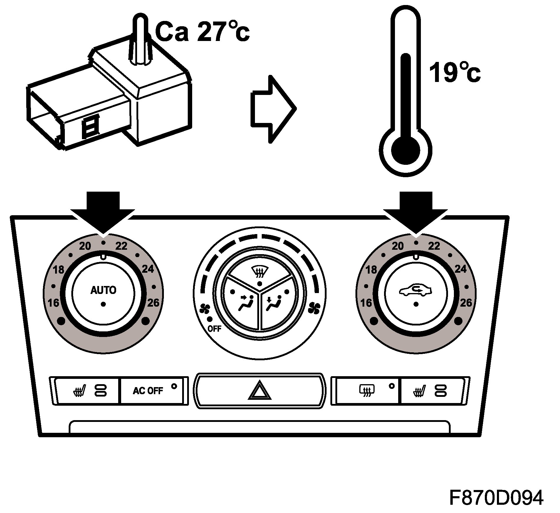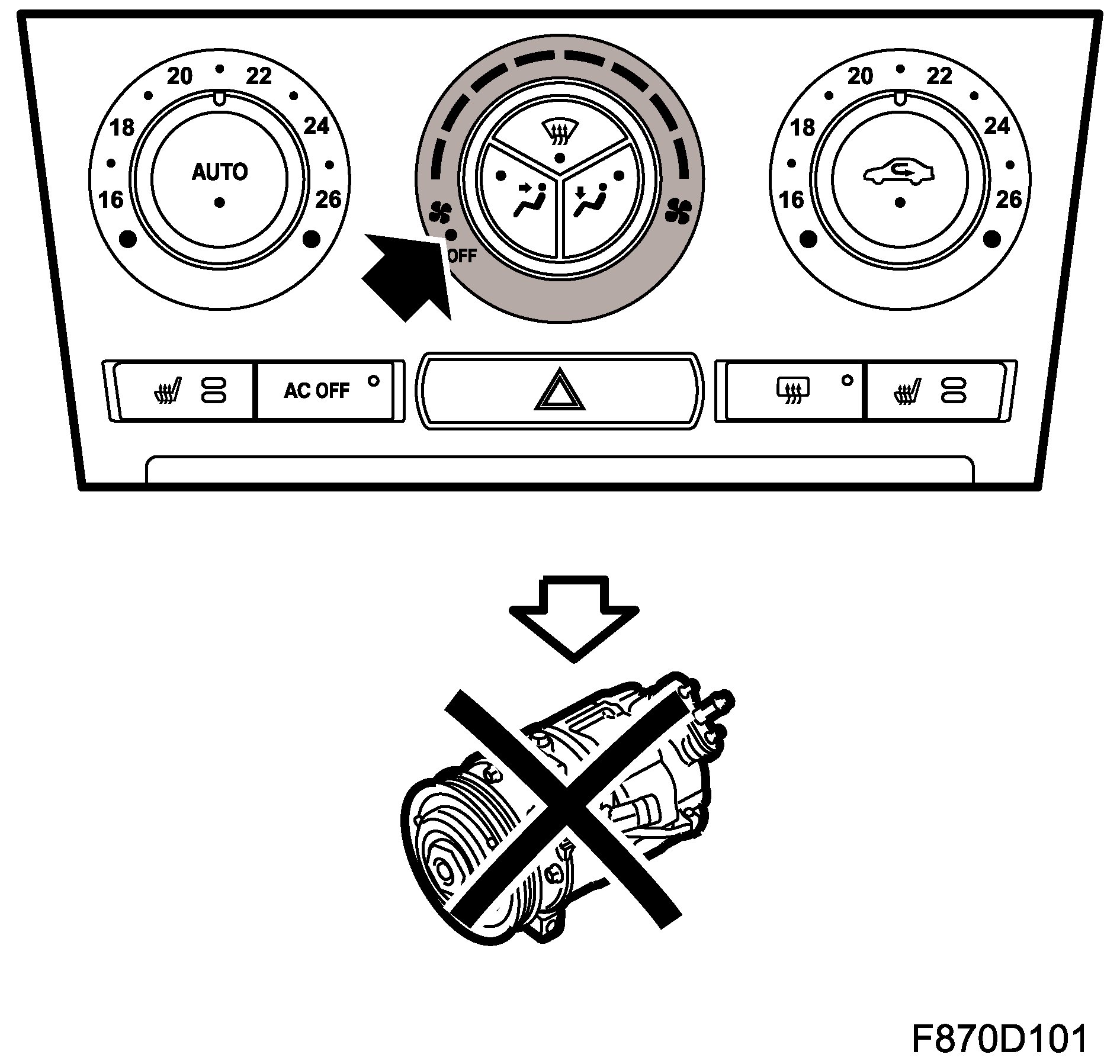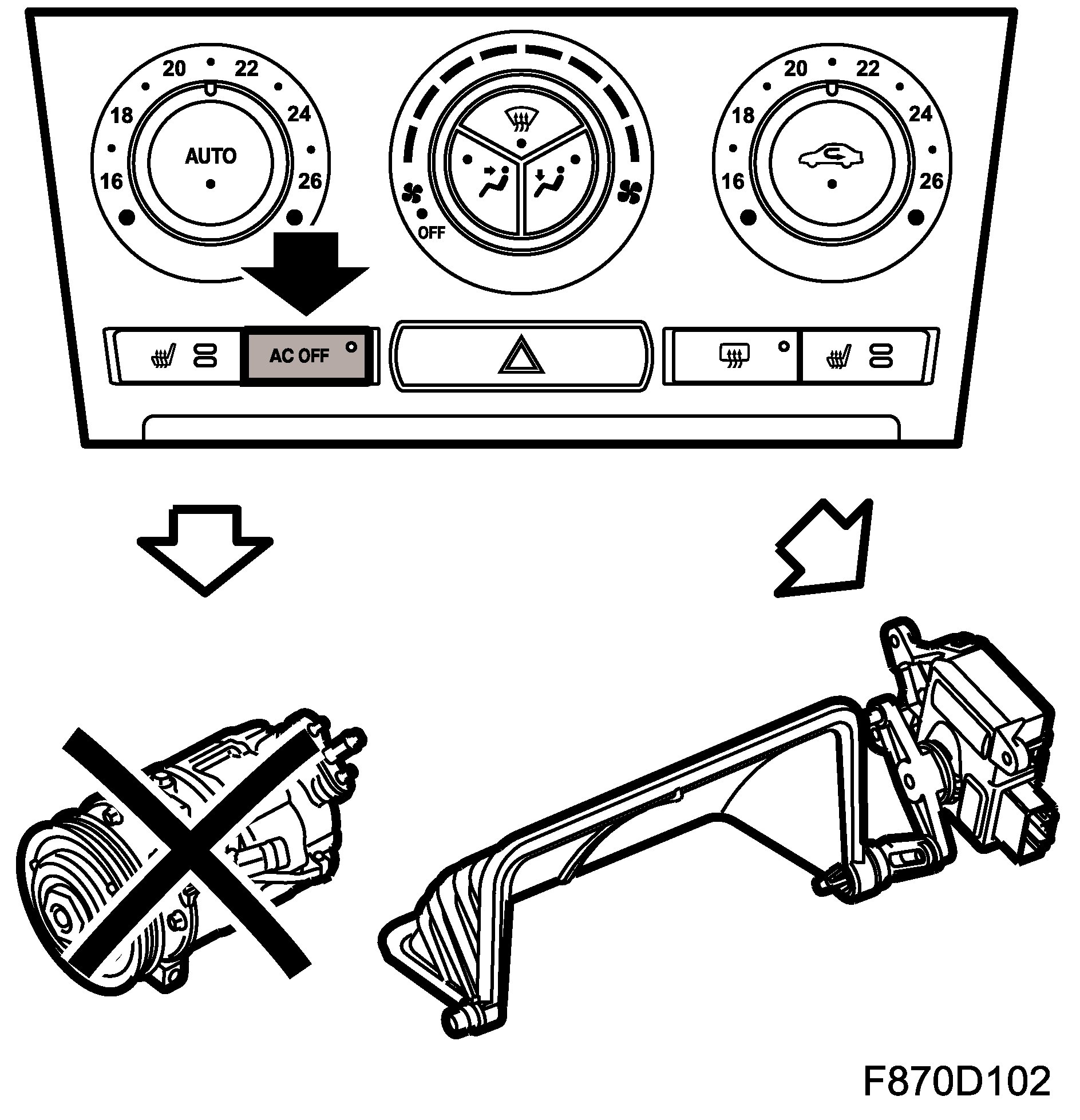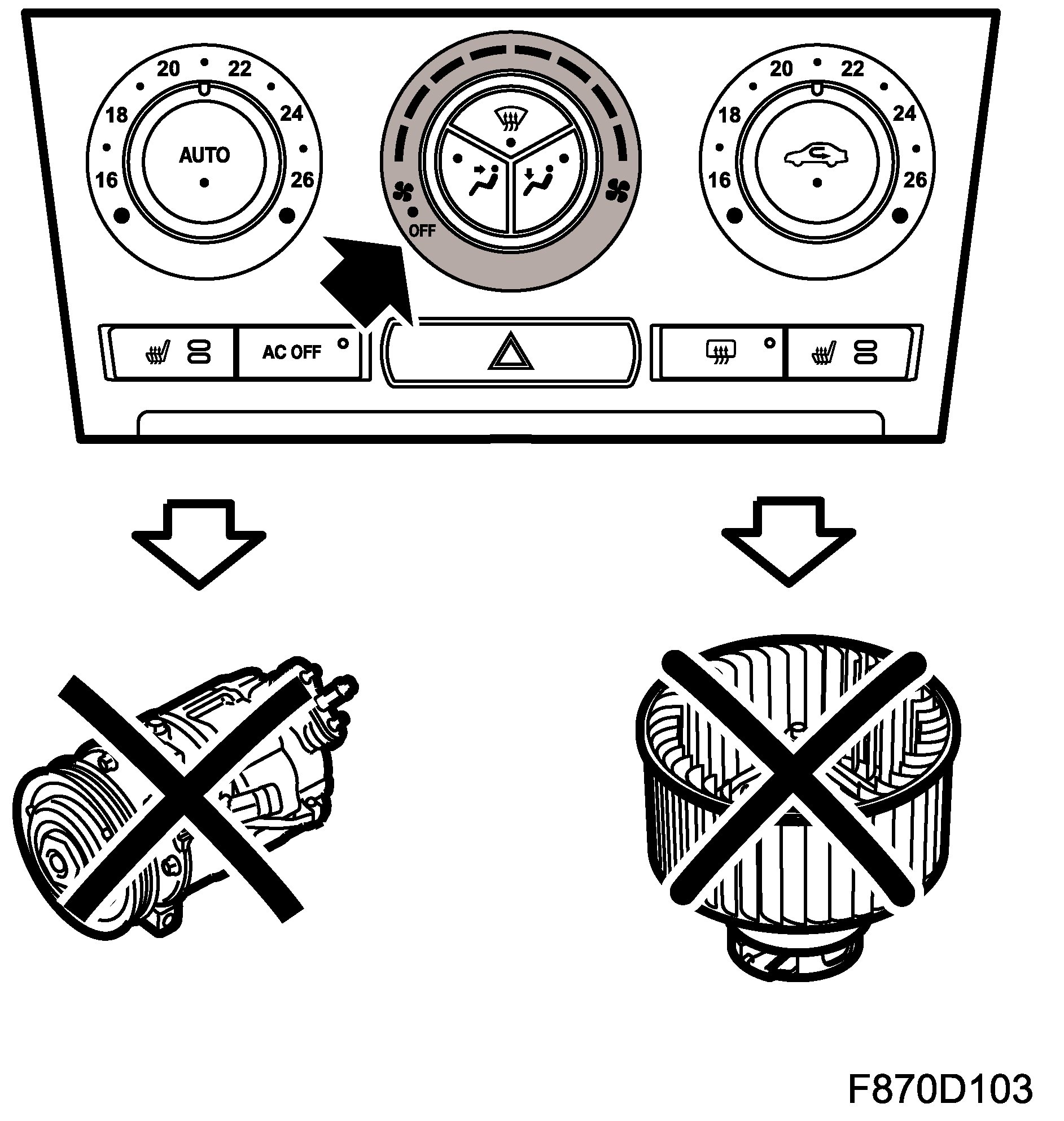When the ignition is switched off, no buttons are operable, all stepping motors are stopped and recirculation off is selected after 10 seconds. Diagnostic communication is maintained if it was running when the ignition was switched off, but it cannot be restarted.