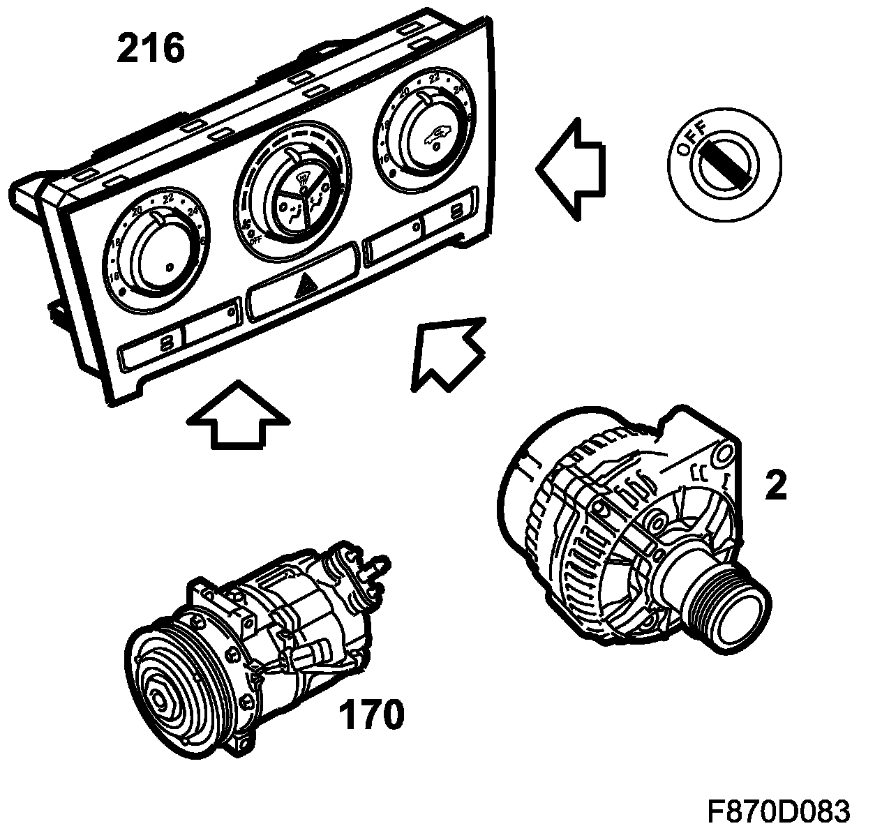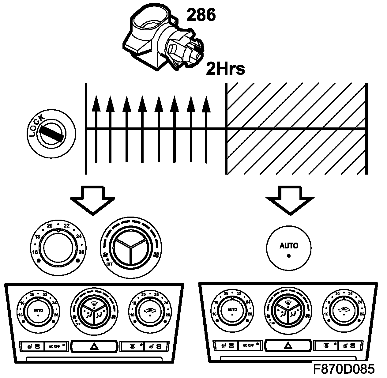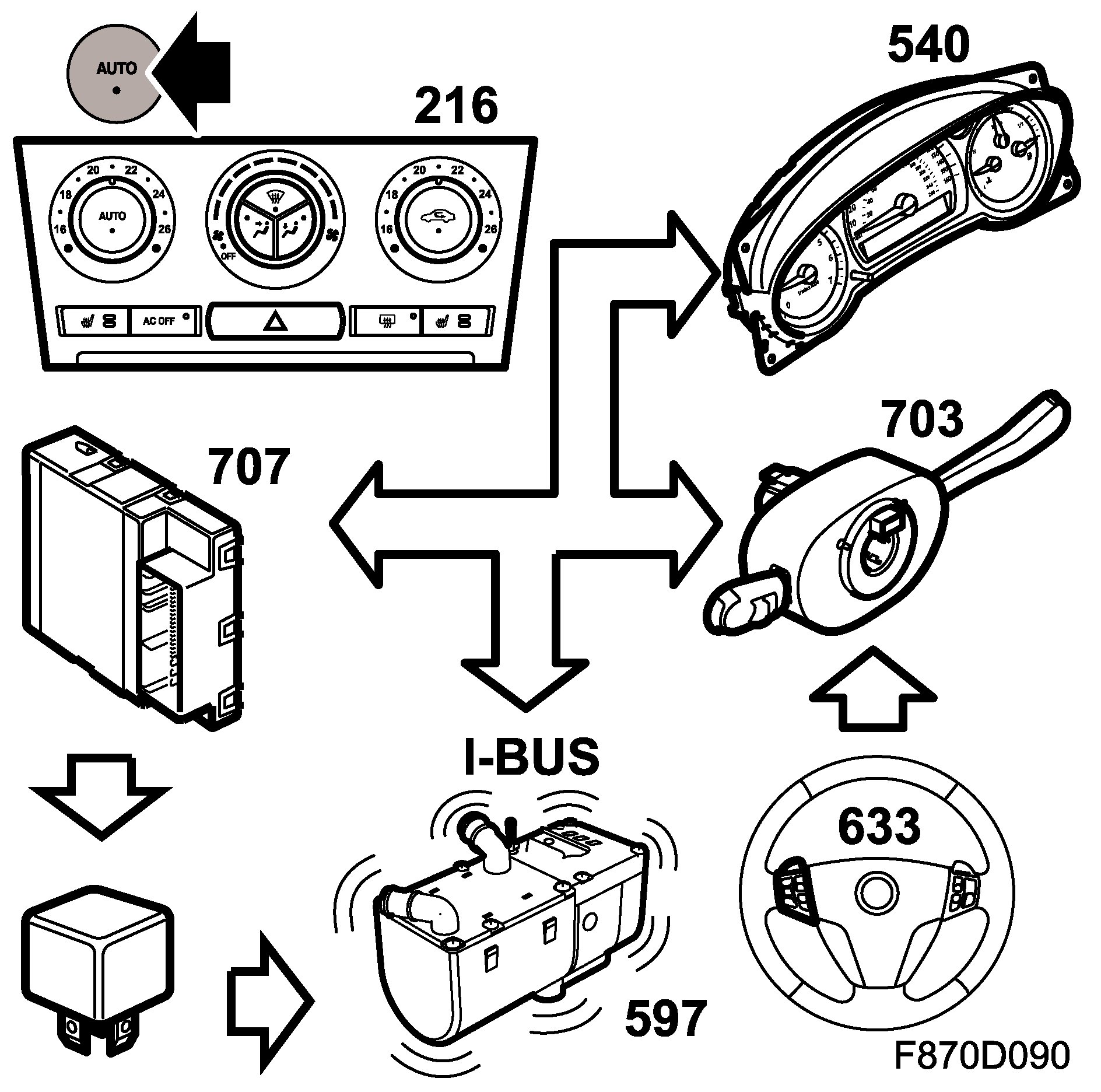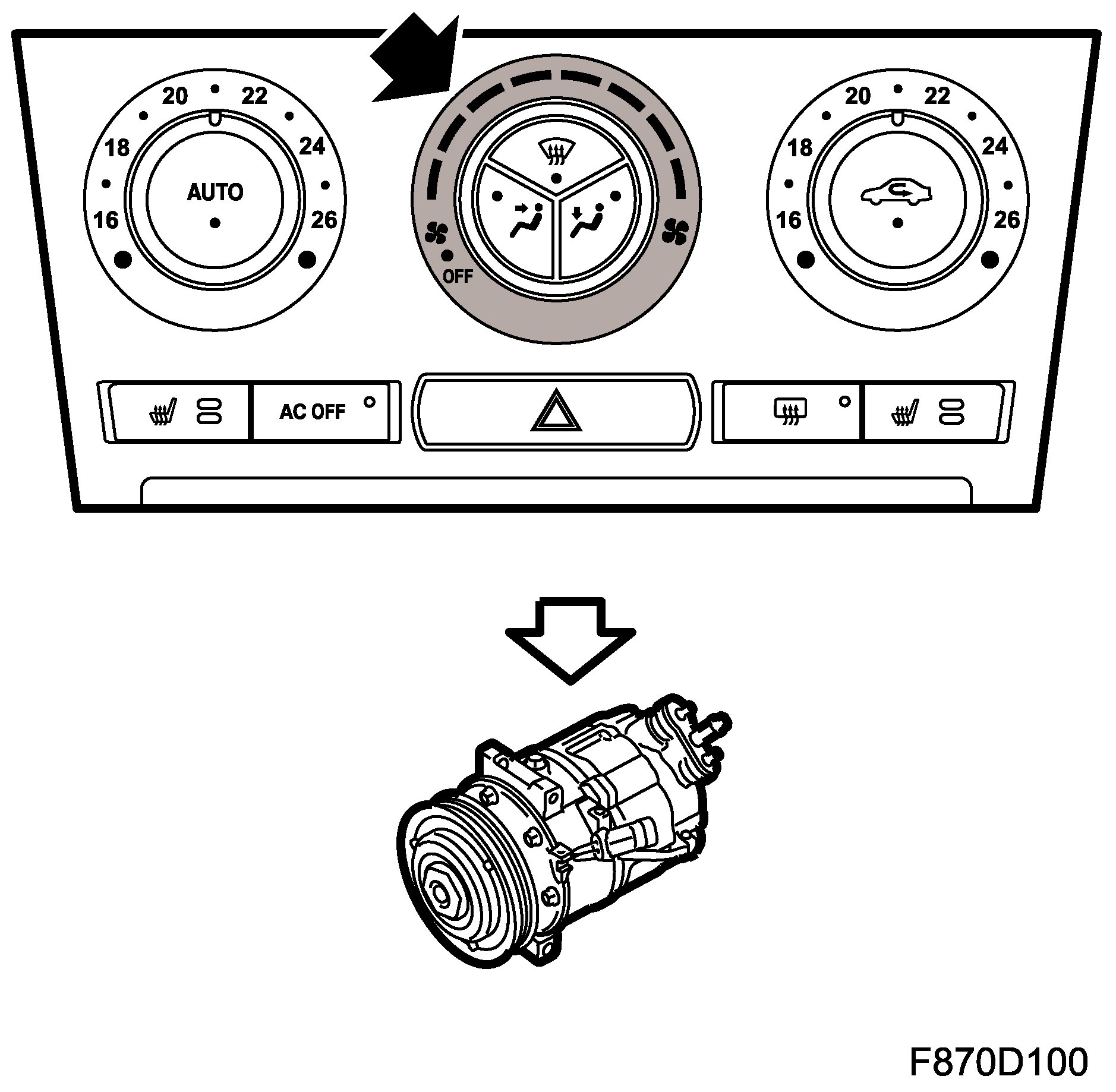 When the ignition is switched off, no buttons are operable, all stepping motors are stopped and recirculation off is selected after 10 seconds. Diagnostic communication is maintained if it was running when the ignition was switched off, but it cannot be restarted.