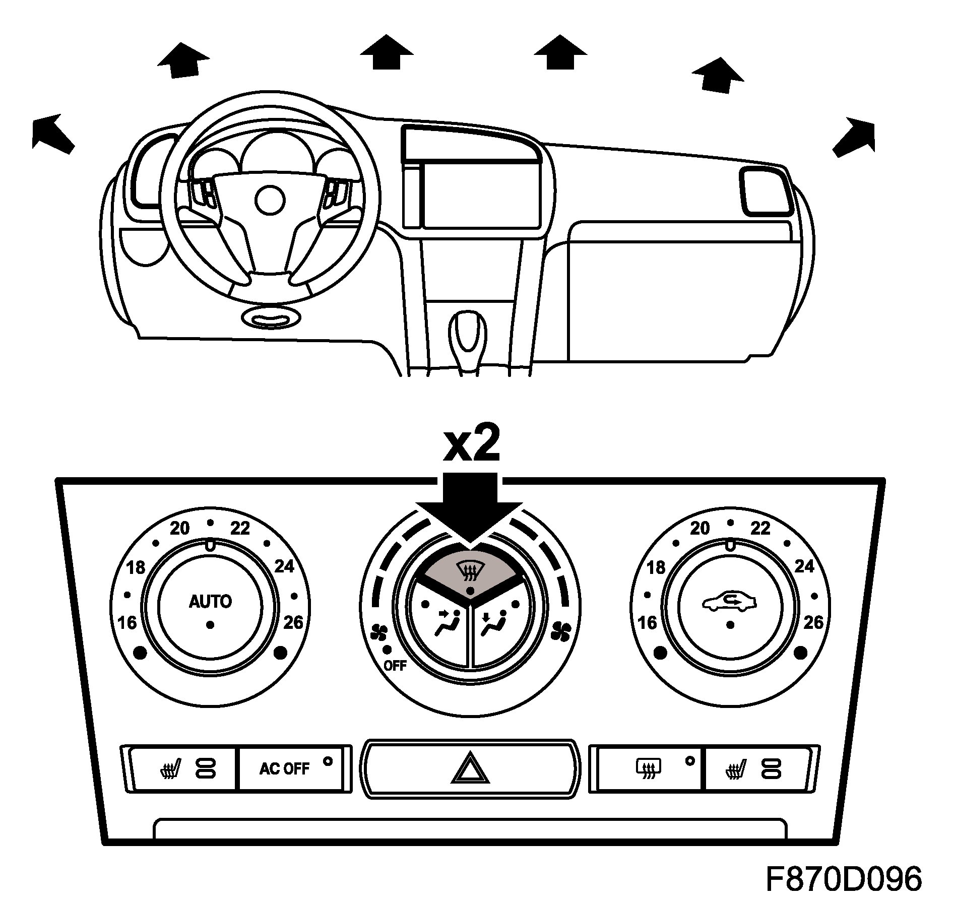 The button can be manually shifted between recirculation and fresh air. The AUTO button must be pressed to restore automatic control. Note that the indicator LED of the AUTO button will be on even during manual recirculation.
