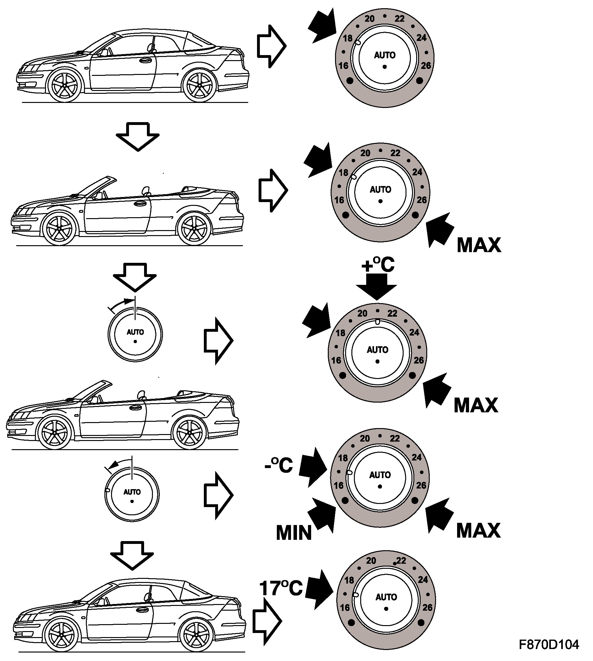 NOTE: The cabin temperature is always adjusted so that the experienced temperature corresponds to the setting. This implies that a thermometer normally displays a value which differs from the setting.