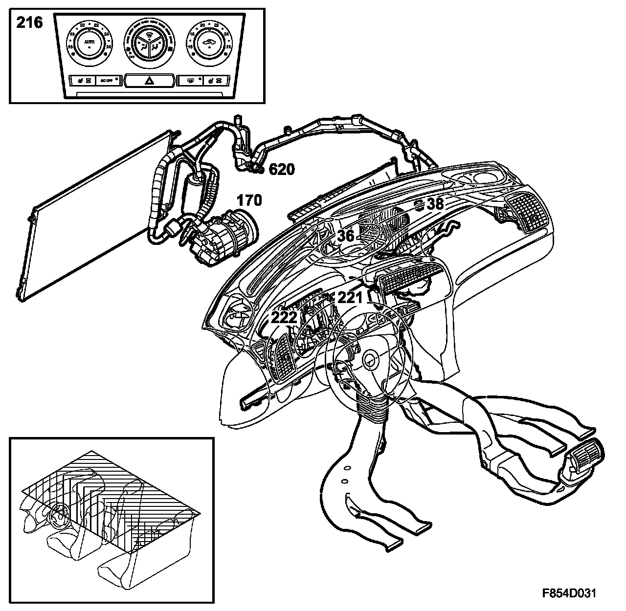 The climate control unit is located in the dashboard with LHD and RHD versions. The difference between the RHD and LHD versions is that the fan housing construction in the RHD version is reversed when compared to the LHD version.