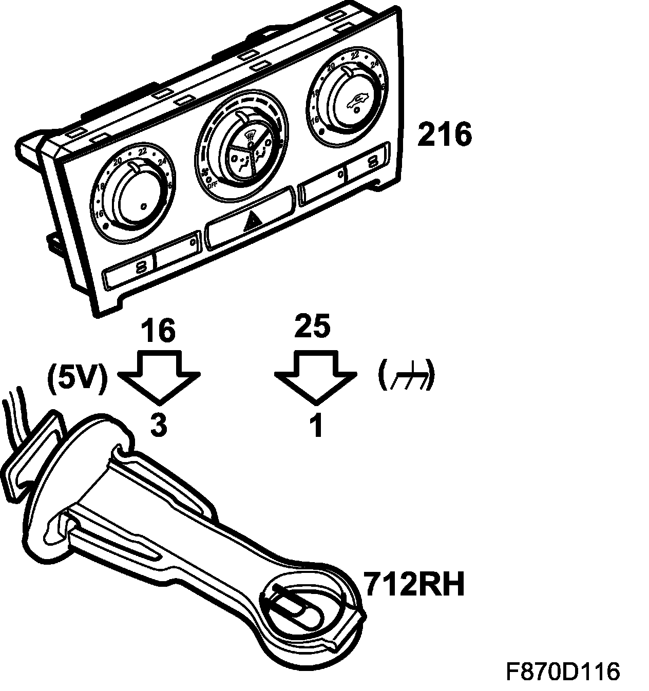 The voltage level from the A/D sensor is converted and is then available in digital form. The digital voltage level is then converted to a temperature value which is stored in the ACC unit operating memory. Voltage levels near 0 V or 5 V are determined as circuit faults.